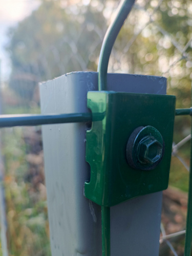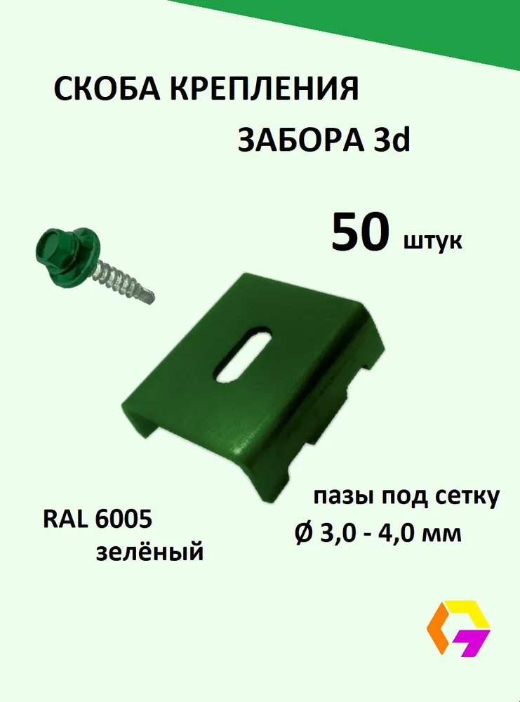 Скоба 35*40 предназначена для крепления секции забора 3Д к столбу. Изготовлена из качественного металла толщиной 2 мм. Имеет двойное покрытие: цинк + порошковое полимерное, что позволяет использовать скобу даже в агрессивных климатических условиях. Цвет скобы зелёный, по каталогу RAL 6005 "зелёный мох". Идеально подходит для крепления сетки диаметром от 3,0 до 4,0 мм. Монтируется на столбы сечением 40, 50, 60, 80 мм и более. Идёт в комплекте с крашеным саморезом 5,5*32 мм зелёного цвета. Рекомендуемое количество креплений на один столб: высота забора до 1 метра - 2 шт, высота забора от 1 метра до 1,6м - 3шт, высота забора больше 1,6 метра - 4шт. Для монтажа шуруповертом существуют биты двух видов: с магнитом и без магнита. Бита с магнитом предназначена для оцинкованных саморезов без покраски. Рекомендуем использовать биту без магнита, так как она немного большего размера, что позволяет монтировать крашенный саморез без затруднений. Бережная и надежная упаковка: стрейч-плёнка и коробка специального размера. Такая упаковка уберегает скобу от царапин и повреждений при транспортировке.