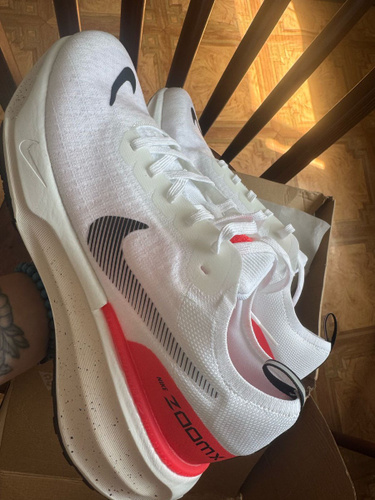 Верх кроссовок Nike ZoomX Invincible 3 выполнен из трехслойного материала Flyknit - технологии, которая гибко подстраивается под форму стопы бегуна и состояние движения, обеспечивая нужное количество обхвата и поддержки. Несмотря на небольшое снижение воздухопроницаемости, общее ощущение от ношения остается комфортным и надежным.