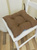 Красивый золотисто бежевый цвет, аккуратно сшита, есть ленты для крепления к стулу