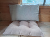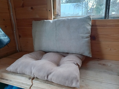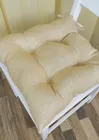 хорошие подушки. На стуле с ними не оч удобно. скользит по нему и кажется что верёвочки оторваться. Но не страшно. Я купила в детский домик на улицу на дачу. на скамейки вместо покрывал. Так как под покрывалами когда убиралась видела что прятались всякие мелкие жучки и мошки. И решила что покрывалам там делать нечего и купила такие подушки. И получилось по мини диванчику. так как сверху поставила ещё обычные подушки под спину. И получилось красиво, фото где-то было надо искать. Пока фото нет потом дополню отзыв если найду. Прощу прощения что долго добавляла фото. Тех что были сделаны я не нашла сделала новые. В общем вышло вот так.