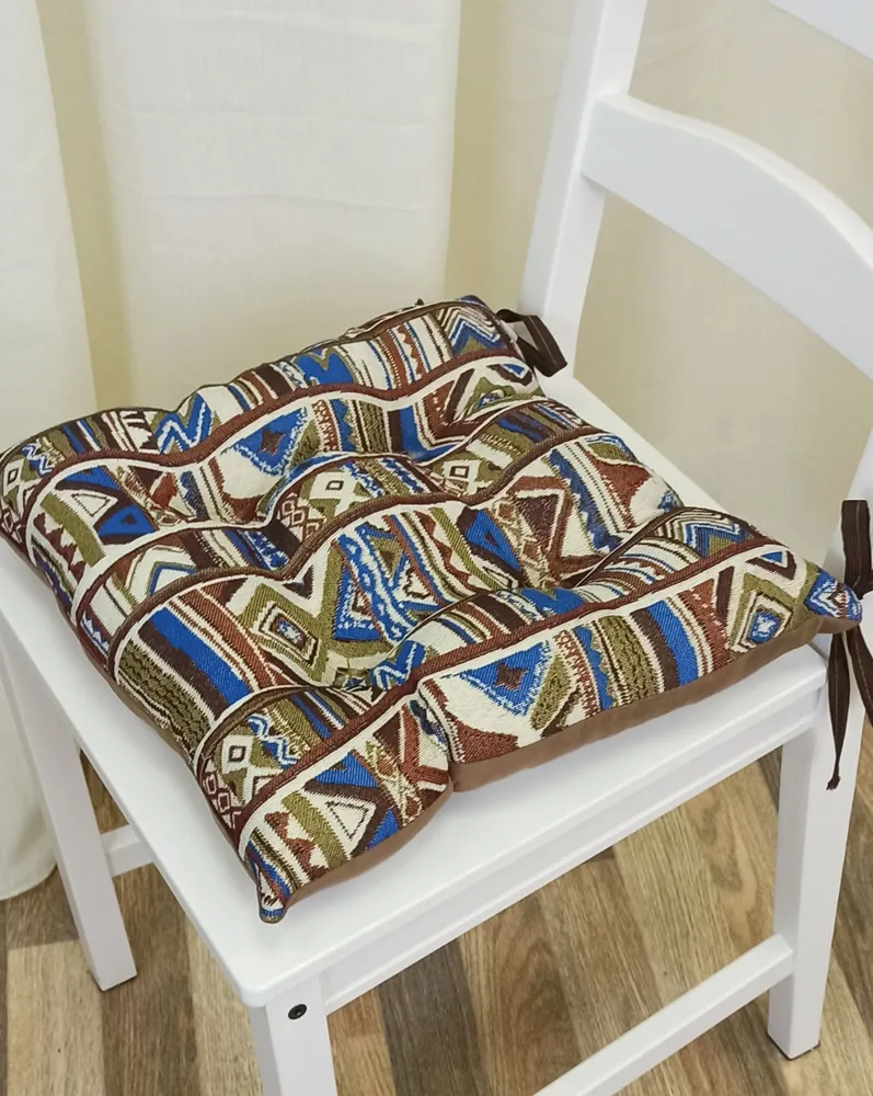 Интерьерная подушка на стул с мягким наполнителем и завязками придаст новый внешний вид мебели, красиво дополнит интерьер и обеспечит комфорт при сидении. С помощью подушки стулья станут мягче, посиделки за столом будут комфортнее, а атмосфера - уютнее и теплее.