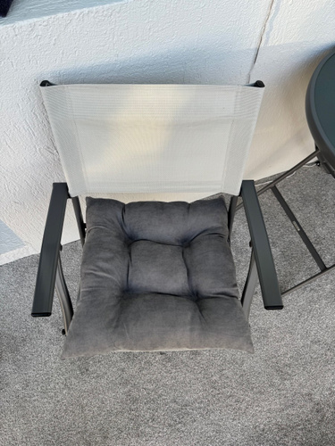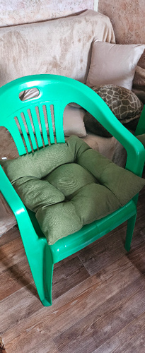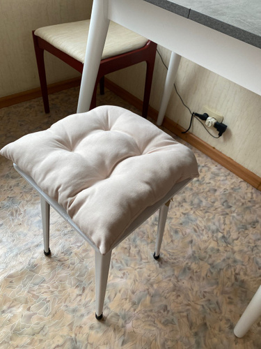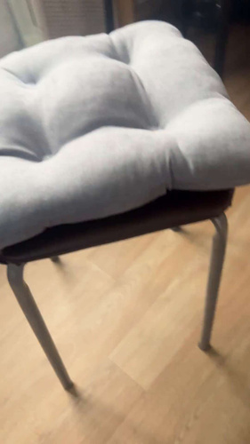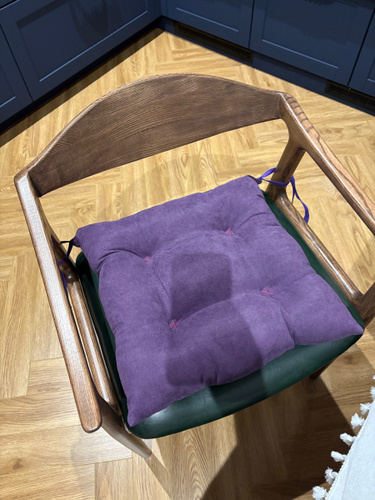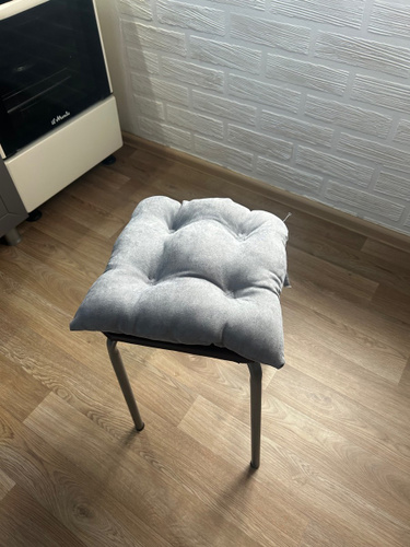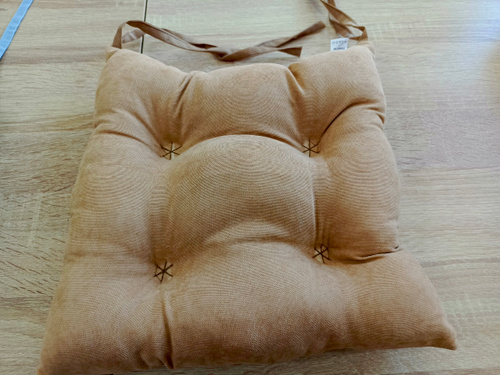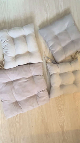 Очень понравилась подушечка👍🏻мягкая и пышная, но в меру. Отлично подошла на наш табурет, с небольшим сидением 25*25, и вписалась в интерьер кухни, есть две завязочки, товар соответствует описанию. Продавца рекомендую 👍🏻