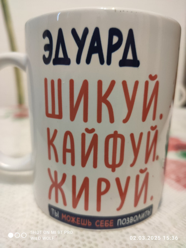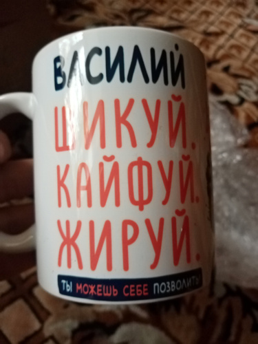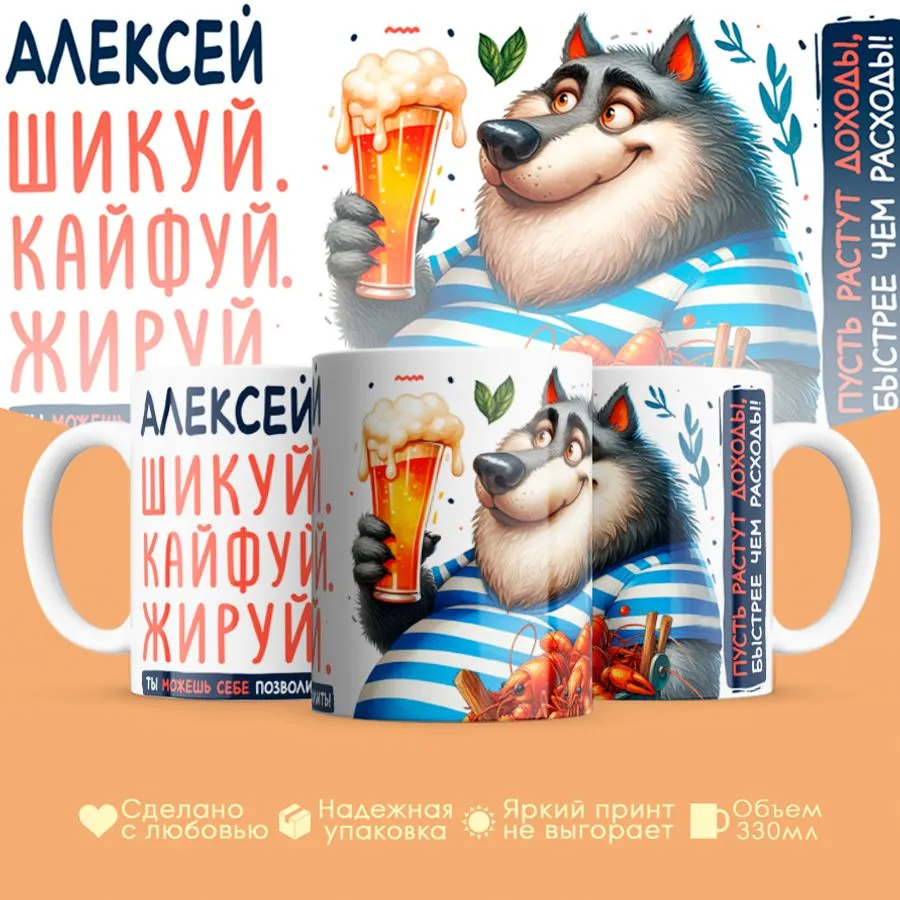 Кружка подарочная с принтом "Алексей Шикуй. Кайфуй. Жируй.". Кружка с ярким и прикольным изображение это уникальный и универсальный подарок для себя или своих родных и близких, друзей, соседей, подарок коллеге по работе, начальству и клиентам, маме, папе, любимой, любимому, брату, сестре или друзьям и подругам, который подойдет абсолютно любому человеку, независимо от пола, социального и материального состояния, возраста и интересов. Это стильная и практичная керамическая кружка с яркой четкой картинкой, прикольным принтом или именем. Кружка для чая или чашка для кофе - это замечательный сувенир на день рождения, подарок на Новый год, на крестины, на 23 февраля, на 8 марта, именины, день матери, 1 апреля, выпускной, корпоратив, юбилей или даже просто так без повода.Керамическая кружка с ярким изображением станет бюджетным и оригинальным презентом мужчине, парню, мужу, другу на день рождения, девушке, женщине, девочке, любимой, подруге или в качестве оригинального подарка на корпоратив.Идивидуальная кружка — подарок универсальный и проверенный, что понравится любому.Кружка керамическая – это посуда, которая идеально подходит для различных горячих и прохладительных напитков будь то вода, чай, кофе, сок, глинтвей, вино и согреть не только руки, но и сердце. Чашку можно использовать, как подставку для ручек, карандашей, кистей, а также при приготовлении различных блюд вместо мерного стакана и многое другое. Кроме того, рисунки и надписи на чашках позволят создать уникальный интерьер на кухне.Подарите своим близким стильный и яркий подарок, который будет радовать глаз каждый день!Объем кружки: 330 мл. Размеры: высота: 9,6 см, диаметр: 8 см. Всего Вам хорошего!
