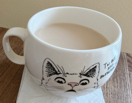 Кружка красивая, легкая. Но по факту в ней 400мл, а не 500. То есть 500 будет если налить до краёв