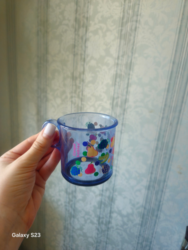 Хорошая кружечка.Пластик плотный.Ребенку сразу понравилась.Только очень маленькая.Хотя маленькому ребенку удобно будет держать.