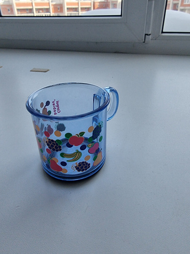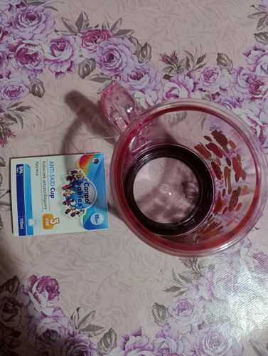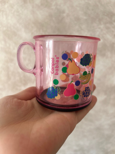 Отличная кружечка для детей. Очень легкая. На дне имеется накладка противоскользящая, легко снимается и можно промыть кружку под ней. Можно вообще её снять. Купили кружку, когда дочке было 8 месяцев, благодаря чуть закругленным краям удобно поить из нее малыша. Сейчас нашей малышке 10 месяцев, она пытается уже пить держа кружку самостоятельно. Так как кружка из пластика не страшно, что разобьется.
