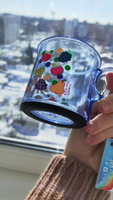 отличная красочная кружка, с прорезиненым дном, не скользит, удобно
