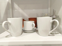 Кружка выполнена из качественного фарфора, который обеспечивает ей прочность и долговечность. Ее удобная форма и большой объем позволяют наслаждаться любимыми горячими напитками в полной мере.