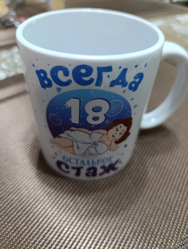 Отличный подарок для женщины! О возрасте женщины не прилично говорить, но именно такой способ поздравления в день рождения отлично подходит. Именинница осталась довольна. Качество кружки отличное, доставлено быстро, упаковка надежная. Спасибо!