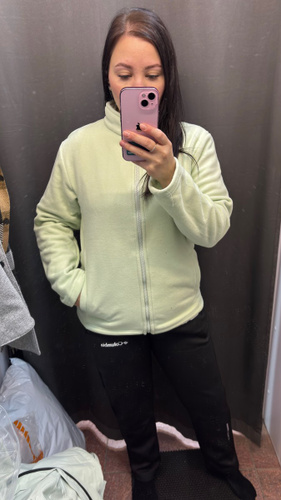Хорошенькая) Понравилась как сидит, свободная) с флисовой кофточкой вообще тепло 👍🏼 Цвет шикарный) Взяла размер L на рост 158, вес 67
