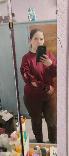 Нарядный праздничный лонгслив представлен в больших размерах, что позволяет каждой девушке найти свой идеальный вариант. Этот модный и стильный элемент гардероба станет отличным подарком для женщины или прекрасным дополнением к коллекции одежды для беременных.