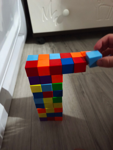 Кубики просто отличные, хорошо стыкуются любыми гранями, можно соединять в разные блоки.