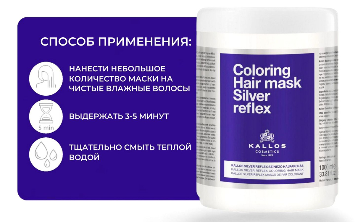 Нанести маску на вымытые, подсушенные полотенцем волосы. Через 3-5 минут тщательно смыть.