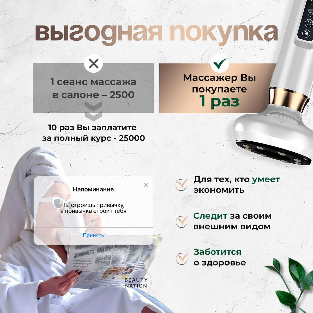 1) Обязательно нанесите массажное масло перед процедурой 2) Разогрейте участок тела 3) Перед включением массажера вставьте фильтр 4) Включите 5) (кнопки плюс/минус) Установите комфортный уровень вакуума (нижняя кнопка с вертикальными волнами самый нижний).Выберите уровень прогрева 6) Начните водить массажером, либо задержите массажер на месте для достижения эффекта баночного массажа 6) Для сброса давления нажмите кнопку Перед использованием массажера необходимо очистить кожу и выпить 200-250 мл чистой воды (для быстрого выведения токсинов). Первые процедуры рекомендуем проводить на 1-ом уровне интенсивности, а также следует отказаться от пищи за 2 часа до применения устройства. Во время использования массажера используйте масло, которое идёт в подарок, для улучшение скольжения устройства. Важно! Любые косметологические продукты используются только после консультации с косметологом и должны быть рекомендованы им.