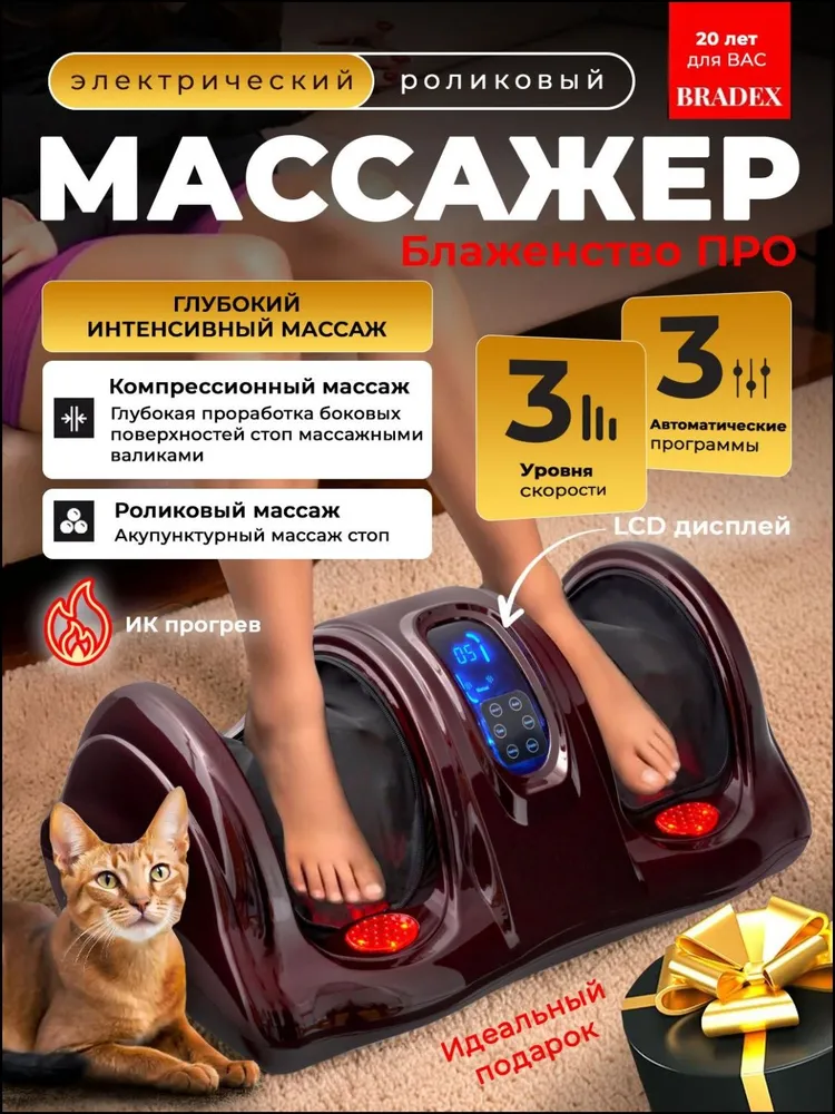 Подключите шнур. Снимите обувь. Поместите стопы на платформы, покрытые тканью. Нажмите кнопку ON/OFF. Установите настройки под себя: время, скорость, направление массажа. Время работы массажера по умолчанию – 15 минут. Для новой процедуры нажмите ON повторно. Рекомендованное время не более 30 минут за одну процедуру. Чтобы прервать сеанс, нажмите OFF. Массажеру потребуется несколько минут для полной остановки. Массажер отключится автоматически после истечения выставленного времени. После использования отключите шнур от розетки. Противопоказания Заболевания сердца, нарушение кровообращения, плохая свертываемость крови, варикозное расширение вен, тромбоз вен, ревматизм, подагра, остеопороз, туберкулез, высокая температура или лихорадка, гепатит, сахарный диабет, гематомы, опухоли, открытые раны на теле, недавно перенесенная хирургическая операция, гипертония и другие проблемы с артериальным давлением. Не используйте массажер во время беременности и при менструации. Не рекомендуется использовать массажер, если имеются встроенные кардиостимуляторы, сердечные имплантаты, а также после недавно перенесенного инфаркта или инсульта. Не рекомендуется использовать устройство в состоянии алкогольного опьянения. ВО ВСЕХ ВЫШЕПЕРЕЧИСЛЕННЫХ СЛУЧАЯХ РЕКОМЕНДУЕМ ПОЛУЧИТЬ КОНСУЛЬТАЦИЮ ВРАЧА ДО ПРИОБРЕТЕНИЯ МАССАЖЕРА.