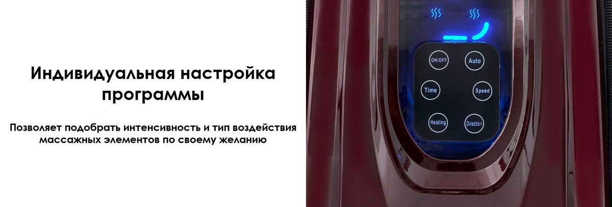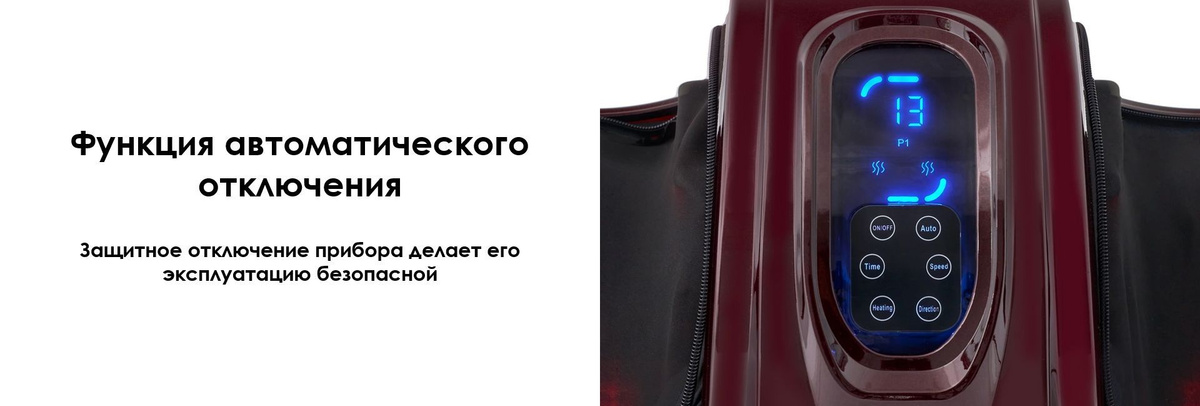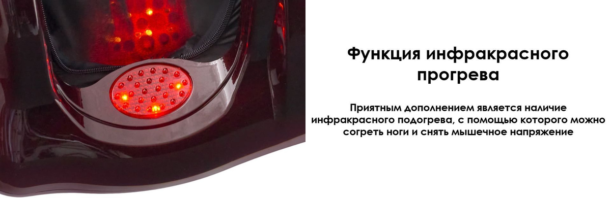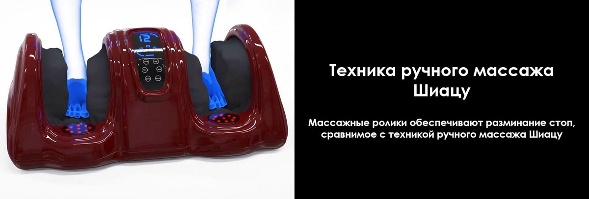| Виды массажных механизмов | Ролики - стопа, Валики - боковые поверхности стопы | Ролики - стопа, Валики - боковые поверхности стопы | Ролики - стопа, Валики - боковые поверхности стопы, Вибрация - стопа и голени | Ролики - стопа, Валики - боковые поверхности стопы | Ролики - стопа, Валики - боковые поверхности стопы |