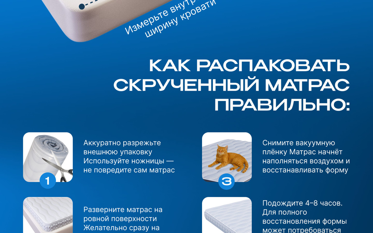 Подскажите сколько времени расправляется матрас?после распоковки через сколько можно на нем спать?