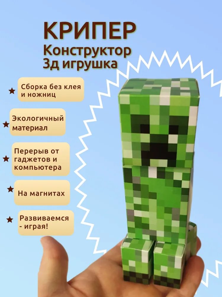 Конструктор для сборки Майнкрафт фигурки Крипер – это уникальная развивающая 3д игрушка, которая привнесет в жизнь вашего ребенка радость творчества и увлекательные часы сборки.