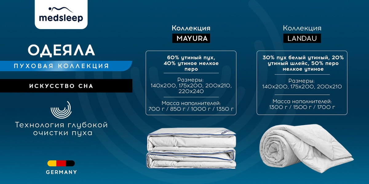 О брендеMedSleep — это современный и уникальный подход ко сну. Постельные принадлежности специально для тех, кто относится к вопросам сна с немецкой педантичностью. Простота и качество коллекций текстиля бренда обеспечивают легкое пробуждение по утрам без компромиссов. Подушки и одеяла из высококачественных наполнителей подстраиваются под тело спящего и создают комфортный микроклимат во время сна. Medsleep — практичный и эстетичный бренд для здорового отдыха ночью.