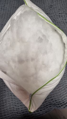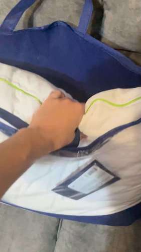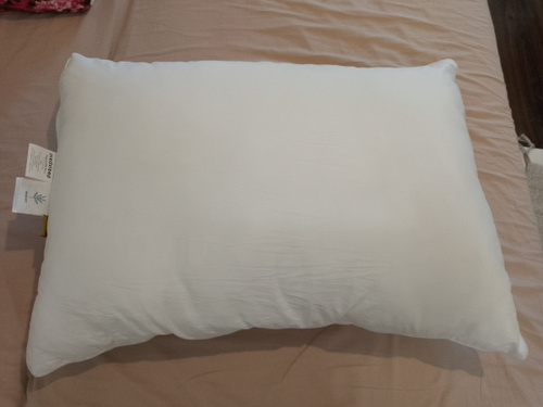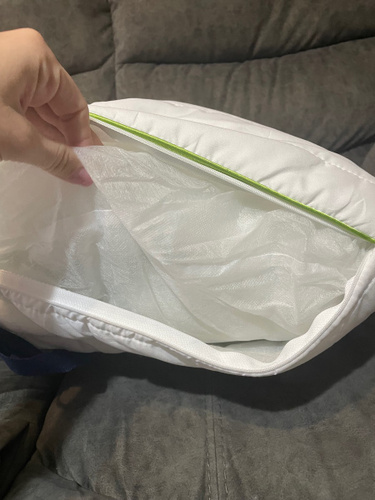 Отличная подушка! Пришла в коробке, целлофане и фирменной сумке, пни раскрытии быстро приняла форму, стала объемной, упругой, спать одно удовольствие, рекомендую! На наволочке есть замок, можно регулировать наполнитель.Покупаю не первый раз, с хорошей скидкой.
