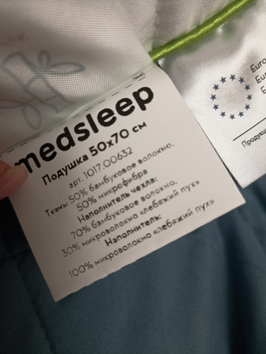 Отзывы о товаре 1375 Medsleep Подушка для сна 50х70 "Dao" с молнией, стеганая, бамбуковое волокно, микроволокно "Лебяжий пух"