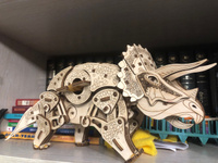 Упаковка целая, полный комплект. Детали тяжело вытаскивать. Они очень хрупкие, часто повреждаются. Даже при максимально аккуратности. Пальцы сильно устают. Странный механизм. Трицератопс почти не ходит, как бы там резинки не были завернуты. Экземпляр мини - интересно дополнение. Но все равно оба они красивые.