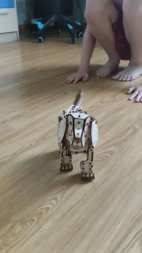 Собака супер! Собирать было очень интересно! После запуска пёсик побежал) Придумать такую конструкцию - это что-то. Благодарю! А ещё игрушка пахнет деревяшкой, по которой выжигали. Кайф.