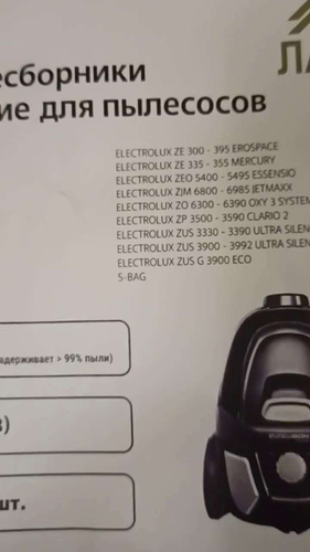 Подходит для пылесосов Philips, Electrolux, AEG, а также других брендов, работающих с S-Bag.