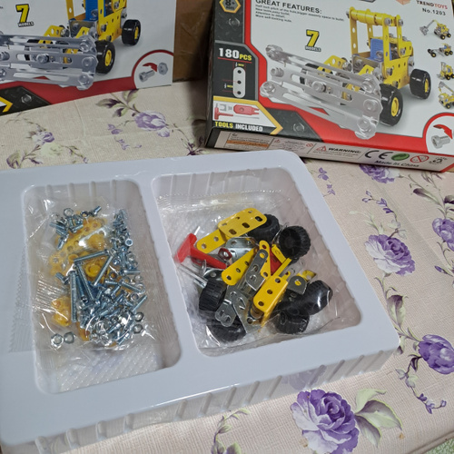 Конструктор металлический это большой развивающий набор для детей из металлических деталей, которые соединяя между собой, можно собрать разнообразные машины. Следуя подробной инструкции по сборке, ребенок с легкостью построит 7 моделей техники, а возможно даже придумает свою модель игрушечной машины. Конструктор металлический для мальчиков это конструктор для детей, который в игровой форме помогает развивать творческие и инженерные навыки, логику и фантазию. Детский конструктор состоит из 180 деталей, каждый элемент изготовлен из качественного металла и абсолютно безопасен для детей. Такие конструкторы подходят как конструктор металлический на уроки труда в школе, так и для занятий по робототехнике. Качественный конструктор железный привлечет внимание как детей, так и не оставит равнодушными взрослых. Всего двумя удобными инструментами можно закручивать и откручивать винтики, гаечки у любой машины. Конструктор детский это игрушка, которой будет рад любой мальчишка.