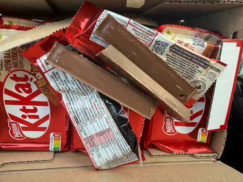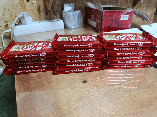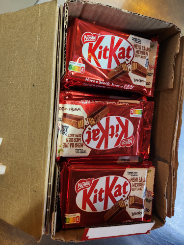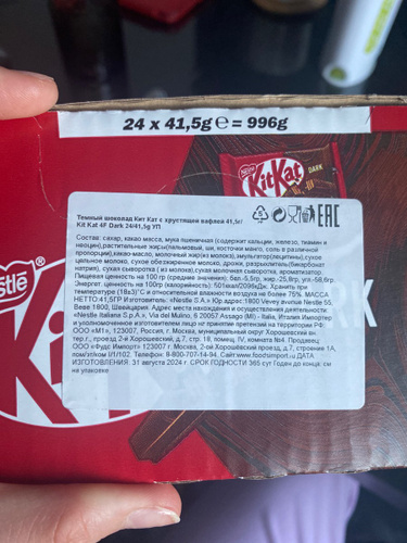 Сахар, мука пшеничная (содержит глютен), какао-масло, цельное сухое молоко, растительный жир (пальмовое масло, масло ши), масло какао, какао паста, сыворотка молочная сухая, сливочное масло, какао-порошок обезжиренный, эмульгатор: лецитины(Е322), разрыхлитель: карбонаты натрия (Е500). Продукт может содержать орехи, арахис и яичный белок.