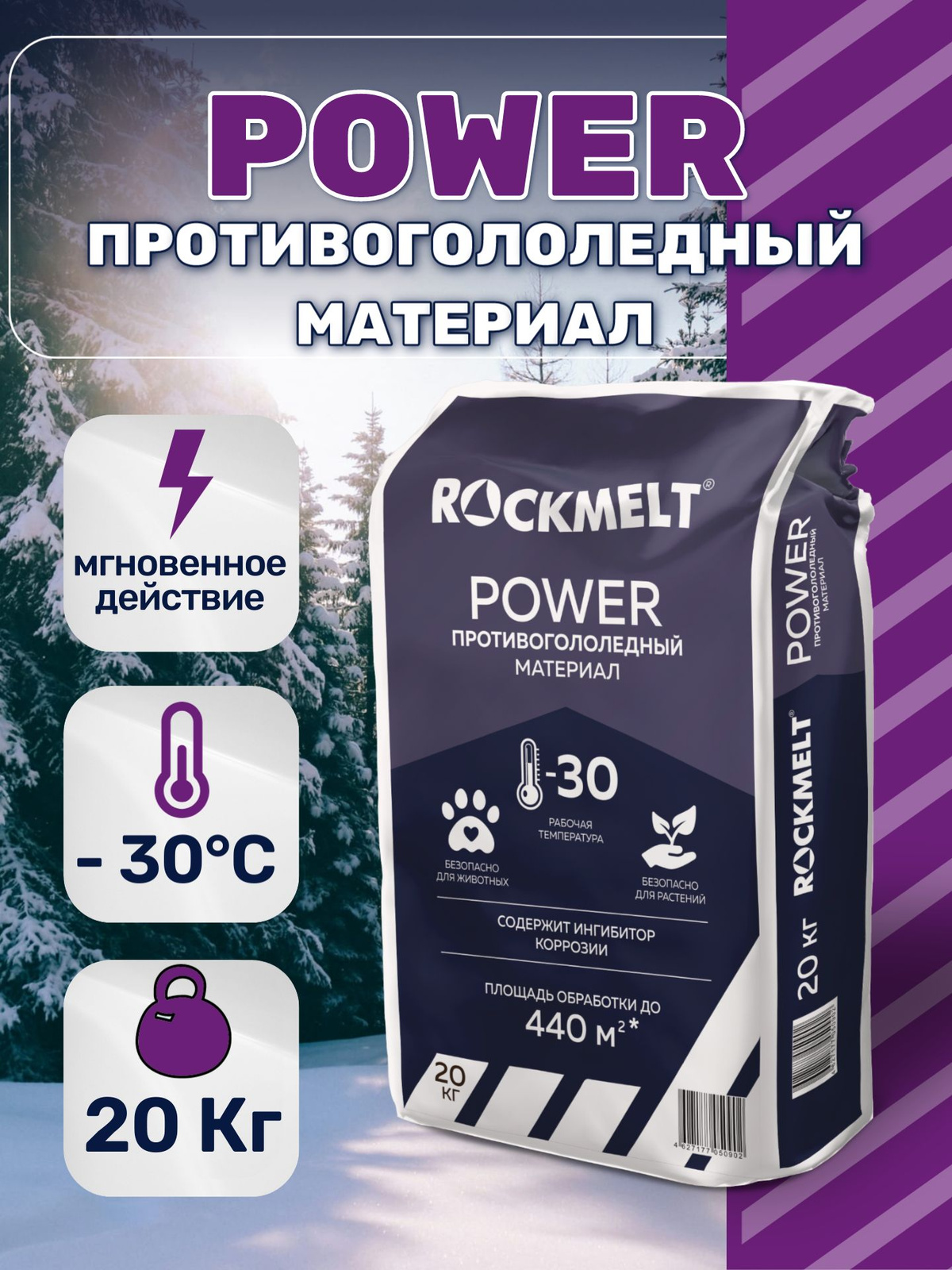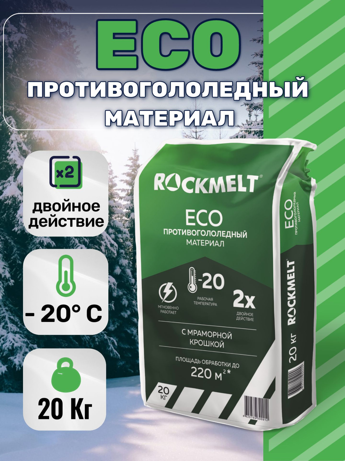 Противогололедный материал Rockmelt (Рокмелт) ECO предназначен для борьбы с зимней скользкостью, для уборки льда и снежного наката, профилактики образования гололёда. Используется для обработки пешеходных зон и тротуаров с твердым покрытием, дорог и улиц, внутридворовых территорий, лестничных сходов, пандусов, плиточных покрытий.
