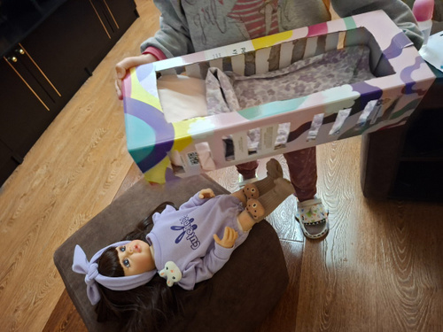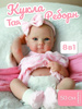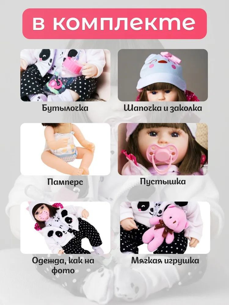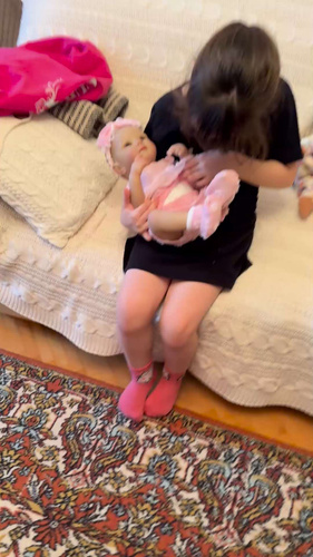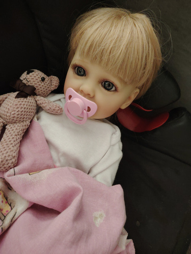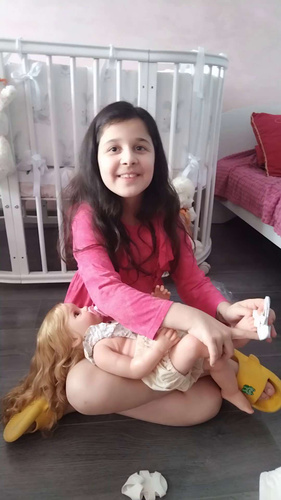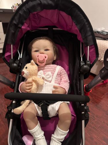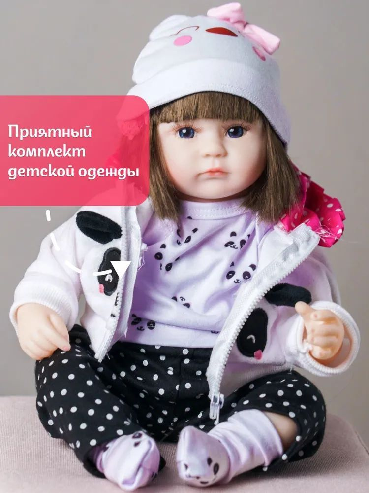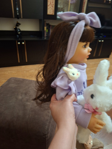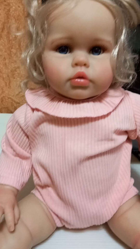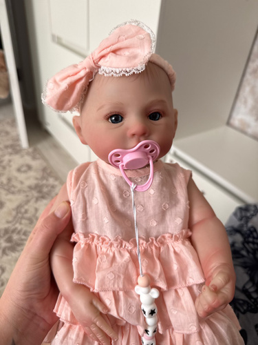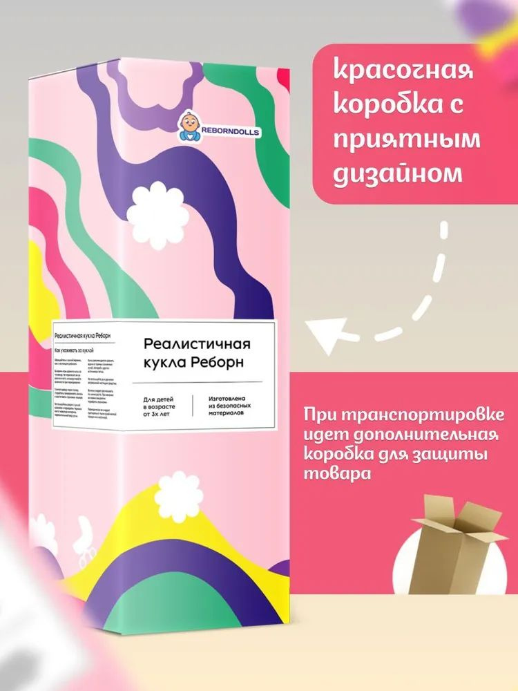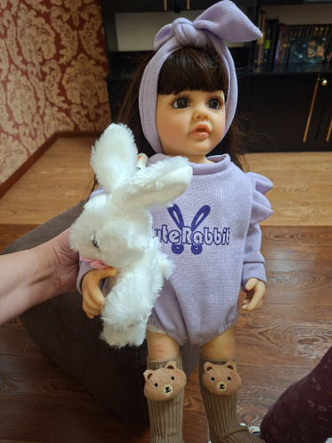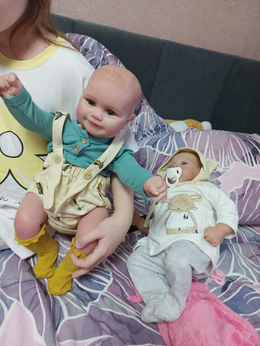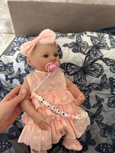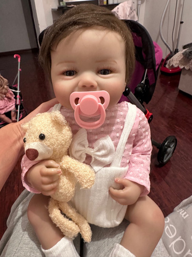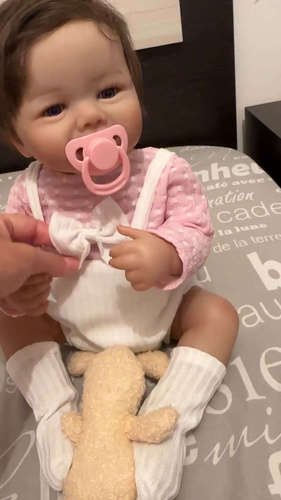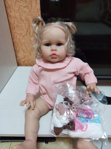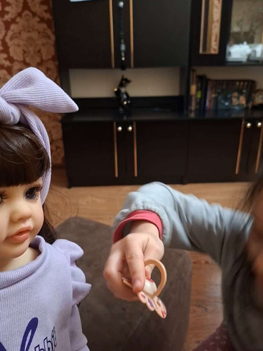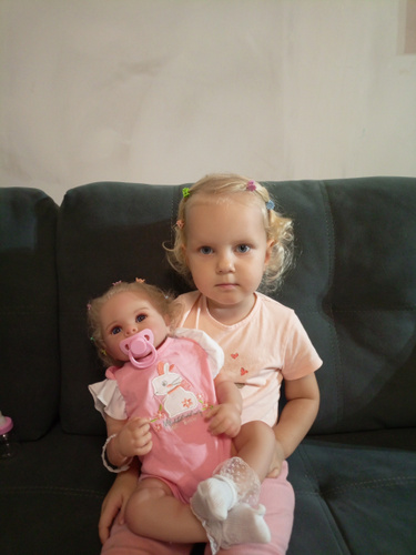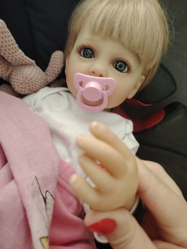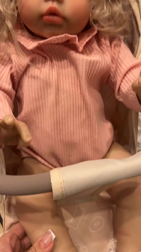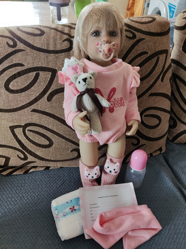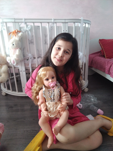 При желании reborn девочка может быть переодета в другую одежду, которую смастерит ребенок или родители. Одежда для реборна легко снимается. Пупсик станет частью увлекательной игры. Например, уложив его в коляску, ребенок может взять его на прогулку. Она может разместить рядом с собой или предусмотреть отдельное место для сна. Ребенок с удовольствием возьмет на себя роль заботливого родителя: он сможет покачать младенца на руках, спеть колыбельную или рассказать сказку на ночь. Реборн кукла большая и будет заметна на руках ребенка во время прогулки, что вызовет интерес у окружающих.