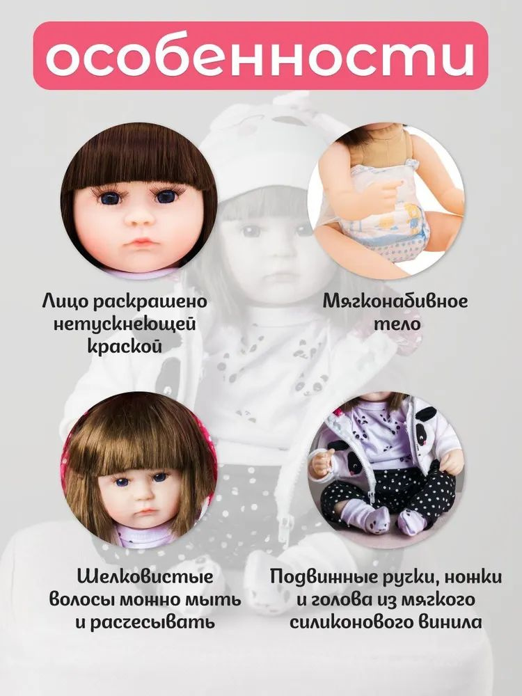 Мягконабивная силиконовая кукла Реборн девочка Вики, 42 см — это реалистичная кукла, выполненная из мягкого силиконового винила, за счет чего создает ощущение реальной кожи. Такая кукла отличается высокой детализацией и имитацией живого ребенка. Для создания реалистичности при производстве игрушки соблюдаются пропорции веса и роста реального младенца.
