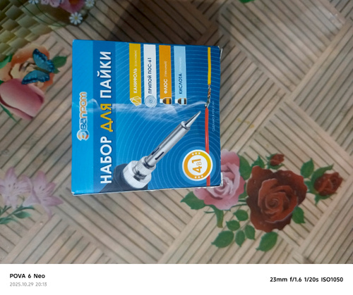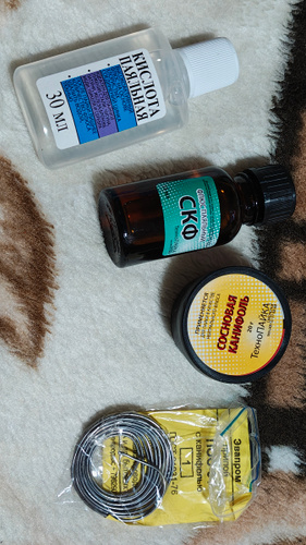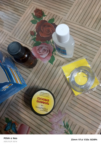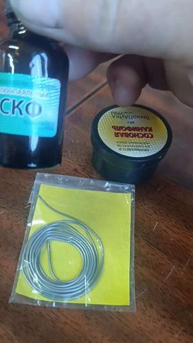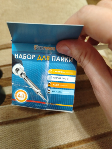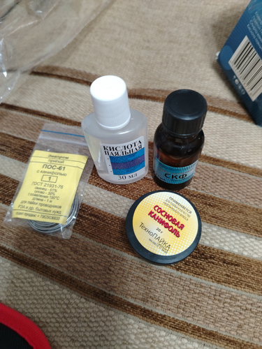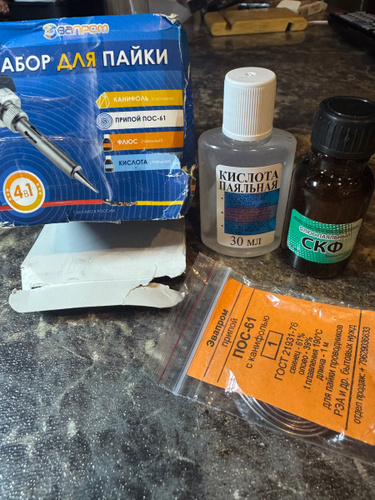 Канифоль сосновая - 1 шт.; Припой ПОС-61 - 1 шт.; Спирто-канифольный флюс - 1 шт.; Кислота паяльная - 1 шт.