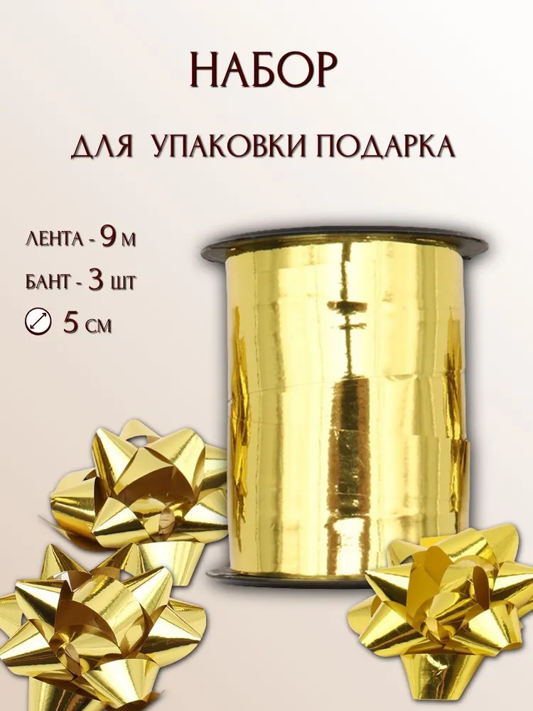 Набор для упаковки подарков и цветочных букетов, творчества и декора, 3 ленты + 3 бантика, цвет золото, Айрис
