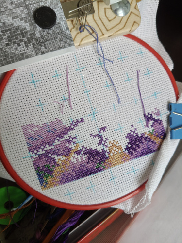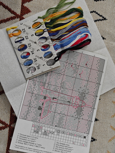 Вышивка выполняется по классической канве-сетке 14 каунта. Она позволяет вышивать подробные полноцветные схемы, но стежки при этом достаточно крупные, их можно рассмотреть и без увеличительного стекла.