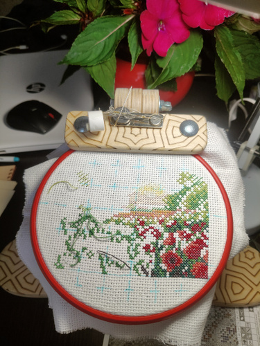 Идея: вышивка небольшая по размеру, поэтому ей можно оформить открытку ручной работы или альбом с фотографиями.