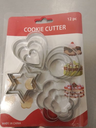 Форма для выпечки сердечек - 3 шт; Формы для выпечки волнистые - 3 шт; Форма для запекания звездочки - 3 шт; Формы трафареты кружки - 3 шт.