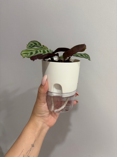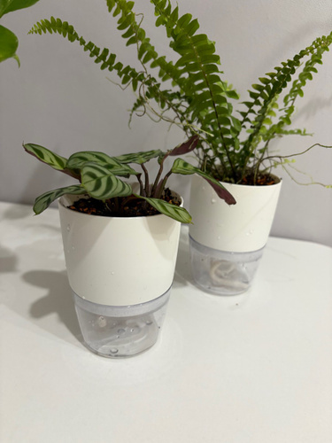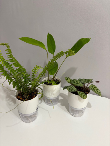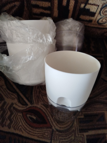 - кашпо белый матовый объемом 0,25л - 3 шт. - поддон для воды прозрачный - 3 шт. - фитильная нить автополива - 3 шт. - картонная коробка (упаковка)