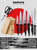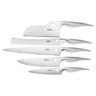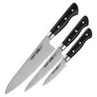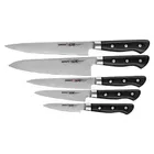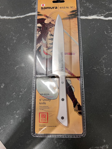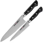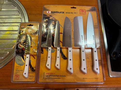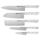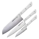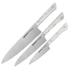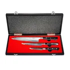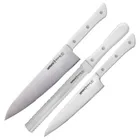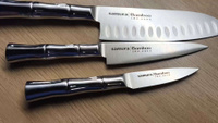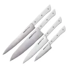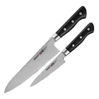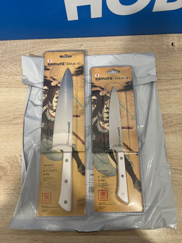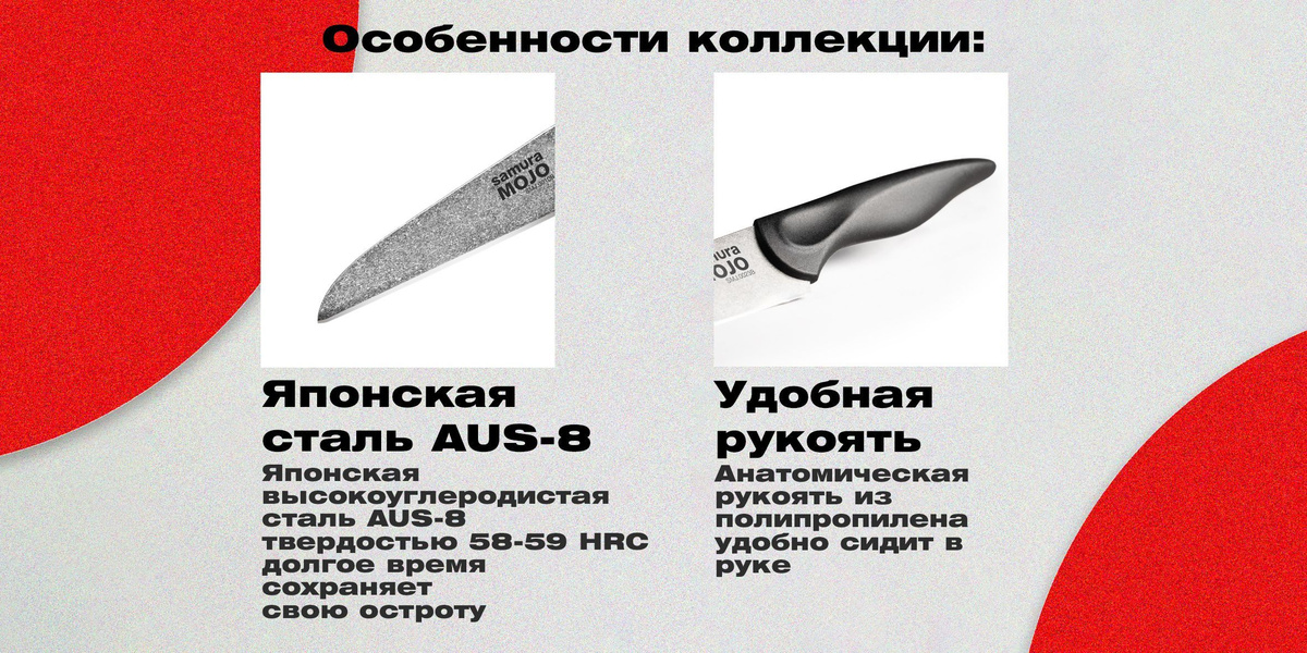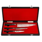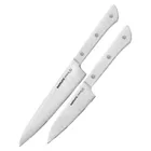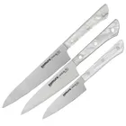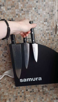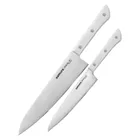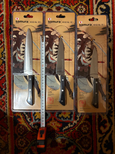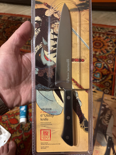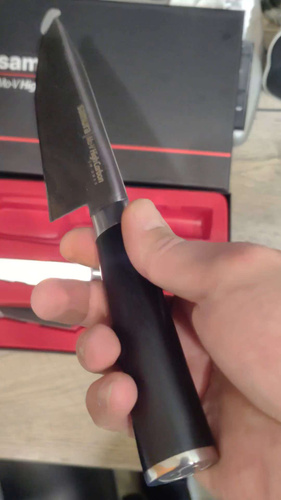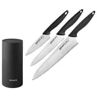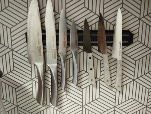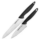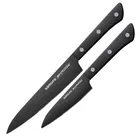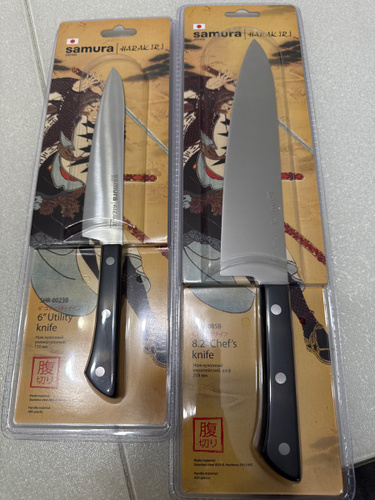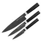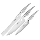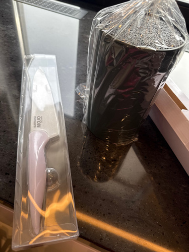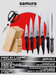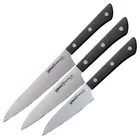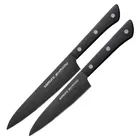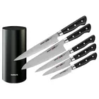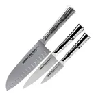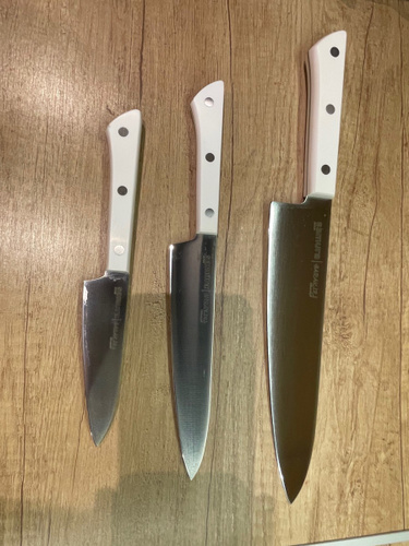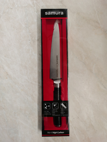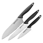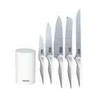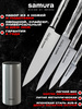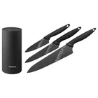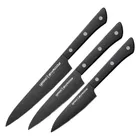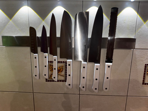 Овощной нож SMJ-0010B/K - 1шт, универсальный нож SMJ-0023B/K - 1шт, шеф нож SMJ-0085B/K - 1шт, филейный нож SMJ-0048B/K - 1шт, хлебный нож SMJ-0055B/K - 1шт, мусат металлический - 1шт, ножницы кухонные - 1шт, подставка для ножей деревянная - 1шт