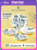В комплект входят 4 десертные, 4 обеденные и 4 суповые тарелки.