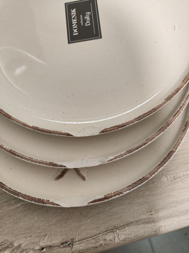 Заказ пришёл быстро, тарелки упакованы очень хорошо! Тарелки по размеру устраивают, только ободок у тарелок на фото смотрелся лучше, чем вживую. В действительности выглядит не очень опрятно, как будто грязные края у тарелок.