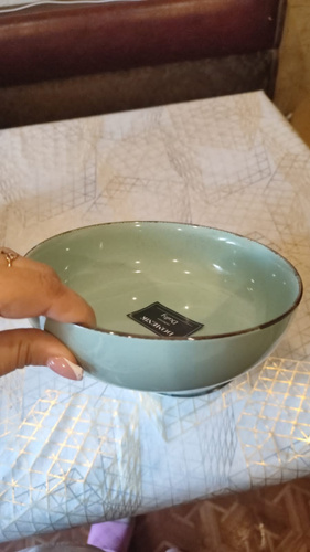 Заказывала набор тарелок зеленого цвета из керамики. Очень довольна покупкой 😊 Вес таких тарелок достаточно тяжелый, что приятно на ощупь и при использовании — ощущение прочности и качества; они уверенно лежат на столе и не скользят 👍. Качество и дизайн замечательные: тарелки выглядят красиво, элегантно вписываются в интерьер и добавляют комнате свежести;... Читать полностью