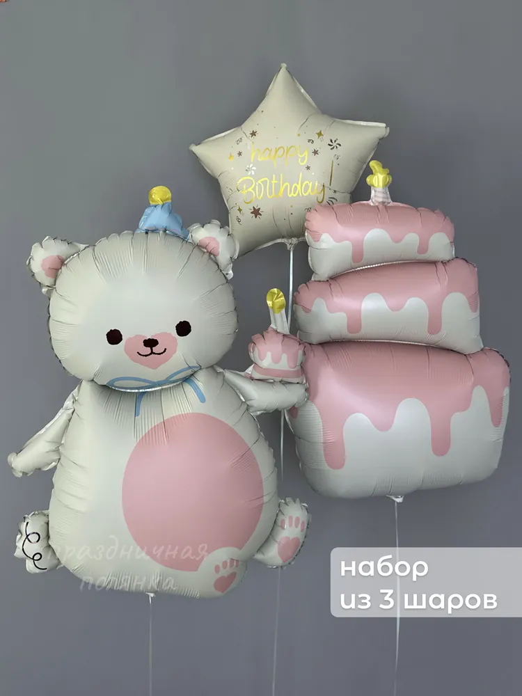 Подарите незабываемые эмоции с этим великолепным набором! Сочетание милого мишки, праздничного торта и элегантной звезды создаст идеальную атмосферу для особенного дня.