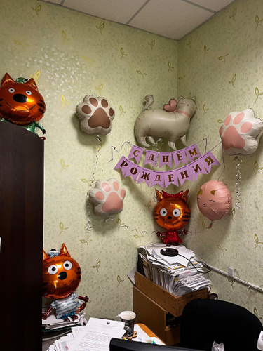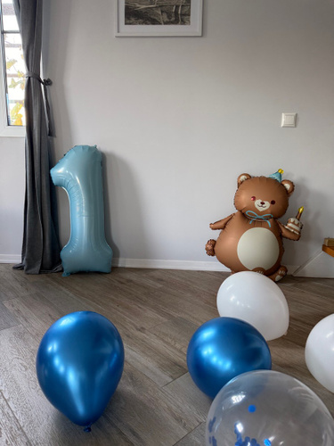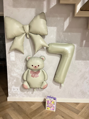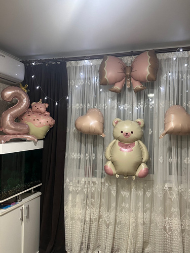 - Главный шар — очаровательный мишка с тортиком, высота 99 см