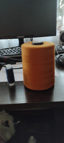 Отличные нитки, большая бобина. Для пошива джинс и отстрочки просто идеально. На фото для сравнения обычная бобина 40 с такой же намоткой 5000 ярдов