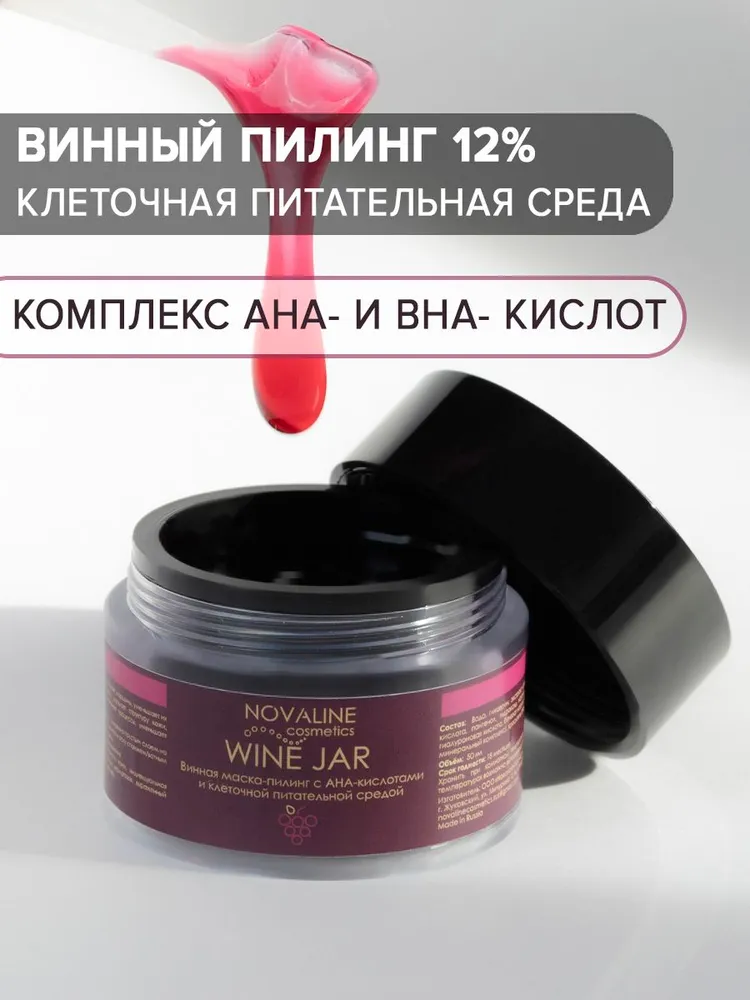 Вода, клеточная питательная среда (аминокислотный, витаминный и минеральный комплекс), глицерин, повидон, экстракт красного вина, гликолевая кислота, молочная кислота, янтарная кислота, пантенол, гидроксид натрия, гидроксиэтилцеллюлоза, аллантоин, салициловая кислота, аскорбиновая кислота, гиалуроновая кислота, бензоат натрия, лимонная кислота, яблочная кислота, глюконовая кислота, винная кислота, парфюмерная композиция, краситель гранат.