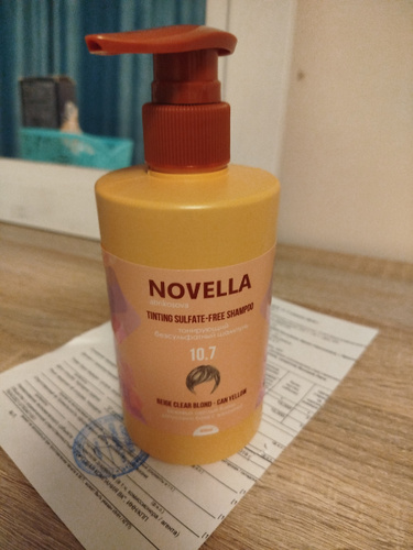 нанести Шампунь и массировать волосы, создавая пену, при этом очищая их. Продолжительность удержания Шампуня на волосах зависит от плотности и пористости волос, степени интенсивности желтизны и желаемого уровня тонировки, может быть от 0.5 до20 минут (правильный вариант — это провести тест на пряди и определить время, нужное именно для Вашего идеального результата). Затем тщательносмыть теплой водой. Рекомендуется использовать перчатки. Для увеличениястойкости тонировки советуеммеждутонировками очищать Бессульфатным Шампунем.