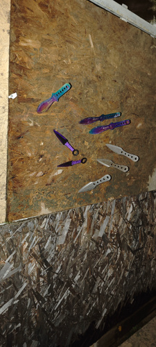 Ножи отличные , цена качество соответствует , метаются хорошо , врезаются в дерево отлично 👌 , веревка на рукоятке слабовата , нужно перевязывать , но это мелочи , в целом все отлично.