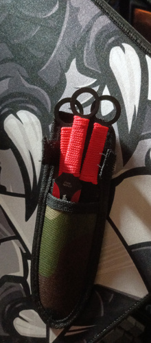 Цвет чехла: камуфляжЦвет ножей: черныйДлина ножей: 17.5 смТип: кунай (с кольцом на рукояти)Размер комплекта: 17,5х5,5х2 см
